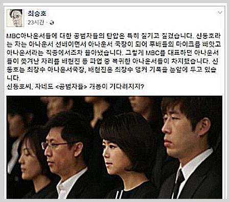 [배우 양승은] 사실 양승은이 한 멘트는 9월 16일자 시사만평 코너 멘트였습니다. 2달 전 멘트를 그대로 재활용한 제작진도 문제가 있지만, 일반적으로 앵커들이 자신이 맡은 멘트를 먼저 체크한다는 걸 감안하면, 양승은 본인도 책임에서 자유롭지 못했습니다. MBC는 다시보기에서 해당 멘트를 삭제했습니다.