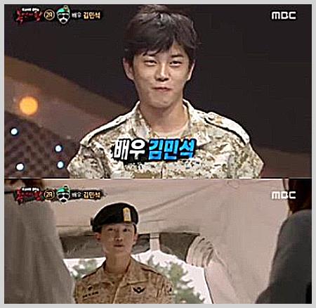 [배우 김민석] 2015년 말에 들어 드디어 성인 역할을 맡게 되었습니다. 미스터리 음악쇼 복면가왕 30차 경연에서 태양의 후배 라는 닉네임으로 나와 2라운드까지 갔으며 어쩌면 닉네임이 힌트였을 지도 모릅니다. 대부분 판정단들은 아이돌 가수로 추측한 반면 조장혁이 비가수로 정확하게 추측했습니다.